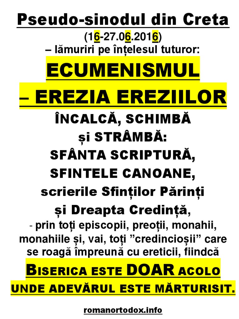 Pseudo Sinodul Din Creta 2016 Lamuriri Pe Intelesul Tuturor 136 Pag Source from : https://ro.scribd.com/document/417986964/Pseudo-Sinodul-Din-Creta-2016-Lamuriri-Pe-Intelesul-Tuturor-136-Pag Se proclamă şi se ocroteşte: Mihai 25 june 2016 at 5:16. Articole din sinodul din creta scrise de vt. Membrii „sinodului panortodox vor constitui o structură permanentă infailibilă. Silviu andrei vladareanu, teolog, jurist, jurnalist lumea credintei eveniment: