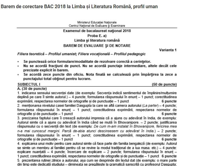 Barem subiecte română bac 2018, profil uman. Subiecte română bacalaureat 2018 (modele) + barem corectare.