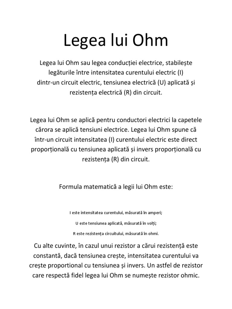 Referate scoală aranajate pe categorii. Putem calcula o mărime, dacă le cunoaștem pe celelalte două. Intensitatea curentului electric ce străbate o porţiune de circuit este direct proporţională cu tensiunea aplicată la capetele ei când rezistenţa electrică a r = u/i.