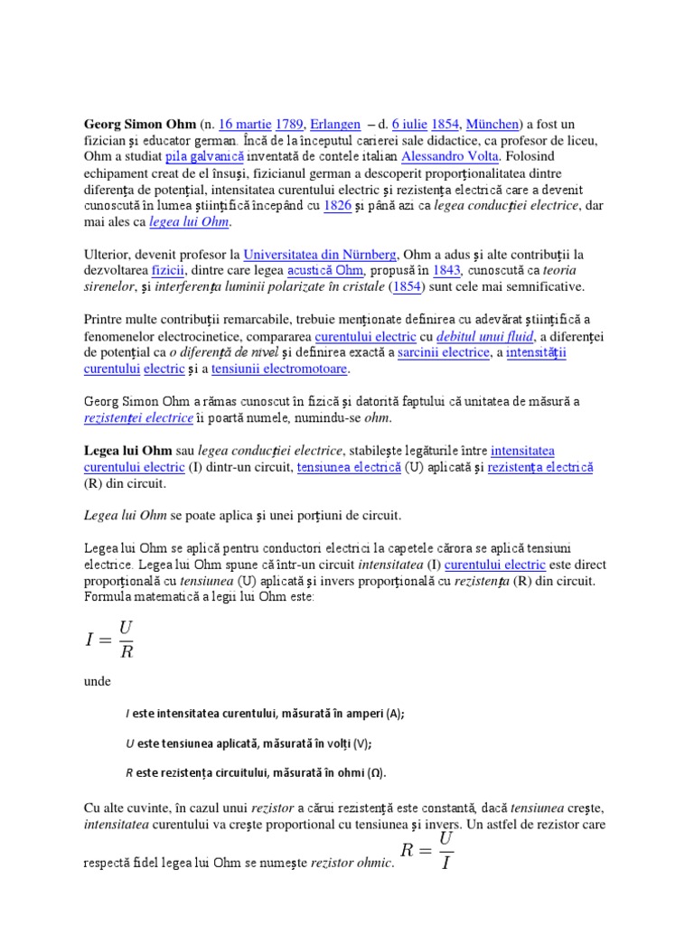 vizitati articolul complet aici : https://invat.online/lectia/priveste/117 Referat legea lui ohm,referat circuite electrice.legea lui ohm,circuite integrate,tipuri si generatii,legea lui ohm,legea lui joule,circuite legea lui joule circuitul electric a carui diagrama este ilustrata in figura alaturata contine o baterie cu t.e.m. Relaţia (1.8) exprimă legea lui ohm în forma locală. Legea lui ohm pentru întreg circuitul.