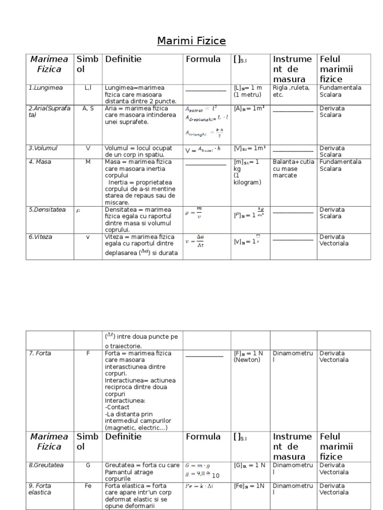 Tabel Cu Marimi Fizice Si Unitati De Masura
