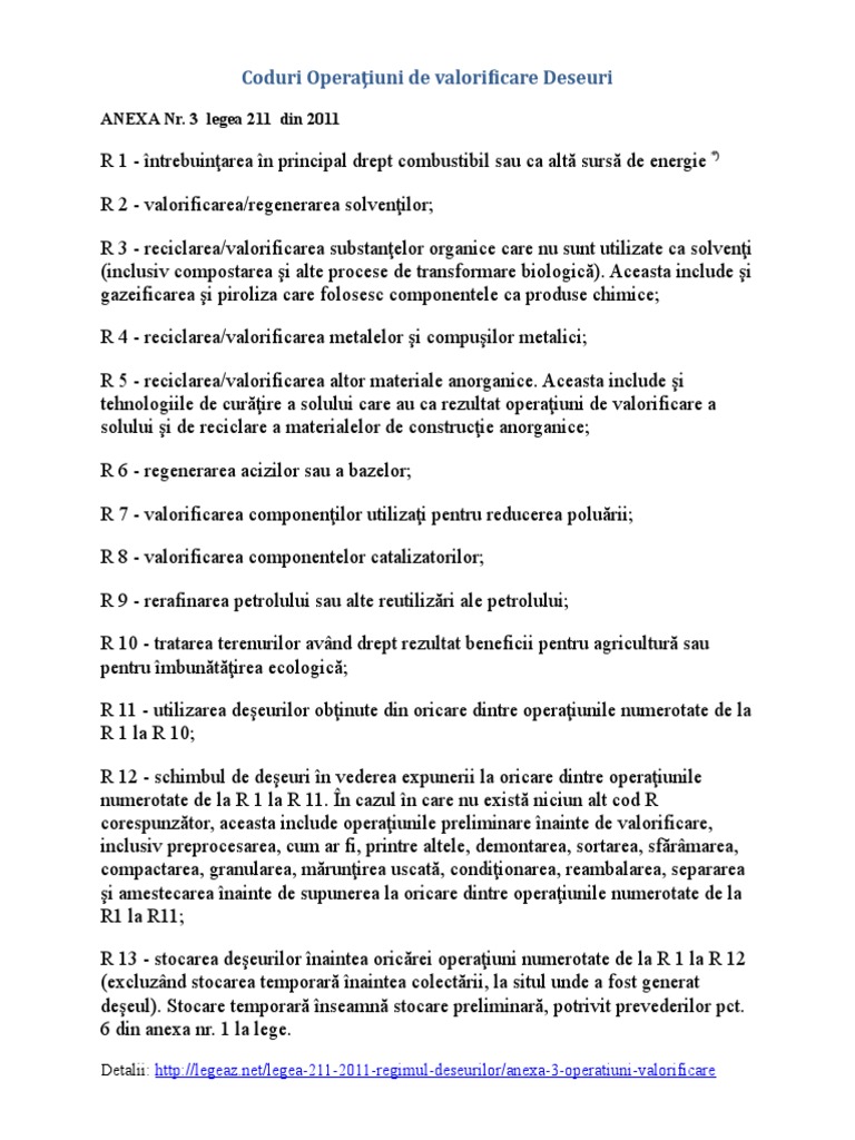 Legea 211 din 2011 legea deseurilor. Text actualizat prin produsul informatic legislativ lex expert în baza actelor normative modificatoare, publicate în monitorul oficial al româniei, partea i, până la 3 aprilie 2018. Sfaturi pentru implementarea colectarii selective.